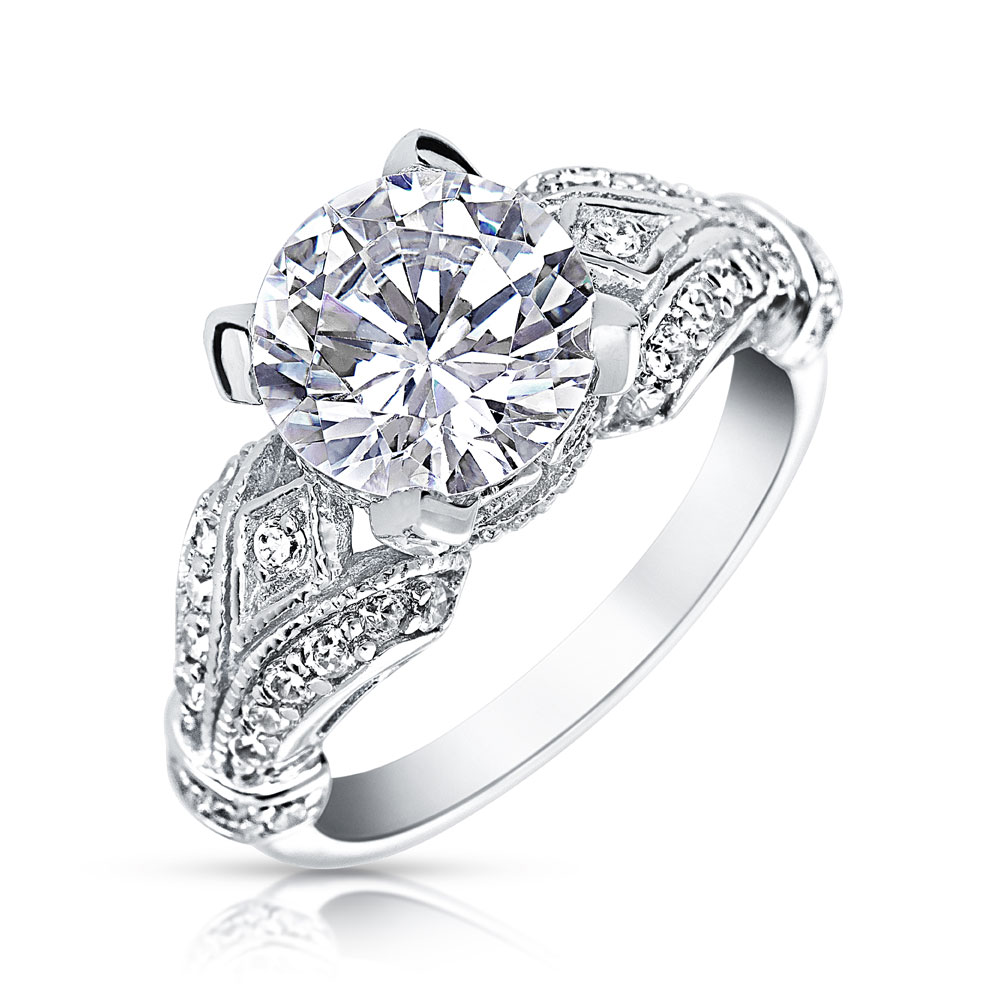 Bling Jewelry 3ct Antique Style Round Brilliant Solitaire