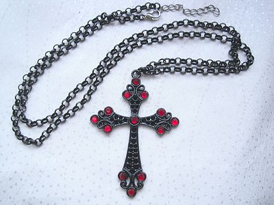 Red Rhinestone Black Cross Long Necklace Gothic Halloween Madonna Fancy Dress Ebay