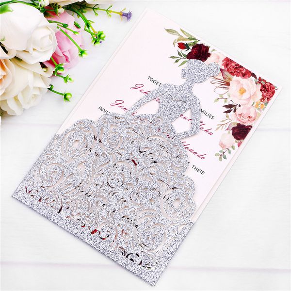 2019 New Silver Glitter Laser Cut Pretty Princess Invitations Cards For Birthday Cards Sweet 15 Quinceanera Sweet 16th Engagement Invites Invitations