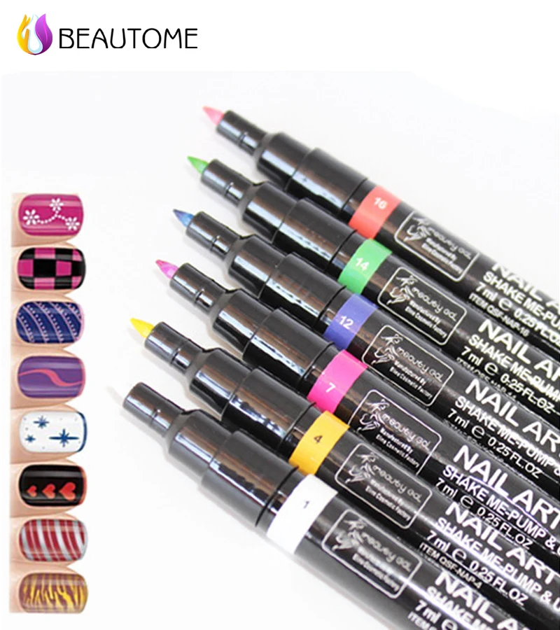 Us 25 Beautome 16 Colors Nail Art Pen For 3d Nail Art Diy Decoration Nail Polish Pen Set 3d Design Nail Beauty Tools Paint Pens Hs0455 In Nail