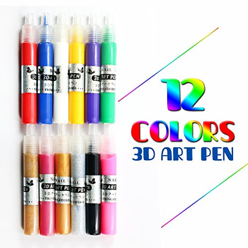 Perfect Summer Hot Design 3d Nails Art Classic Painting Brush Pens 12 Colors Sets Diy Nail Polish Artistic Pens Kits